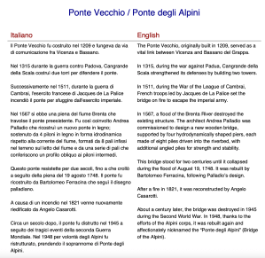 Il Ponte Vecchio fu costruito nel 1209 e fungeva da via di comunicazione fra Vicenza e Bassano.